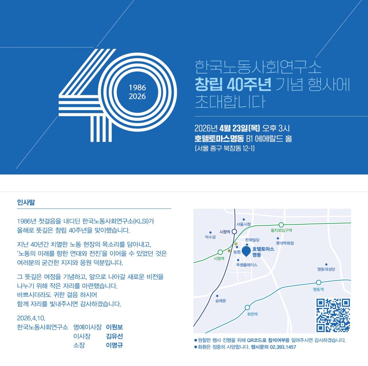 '한국노동사회연구소 창립 40주년 기념 행사 안내'
