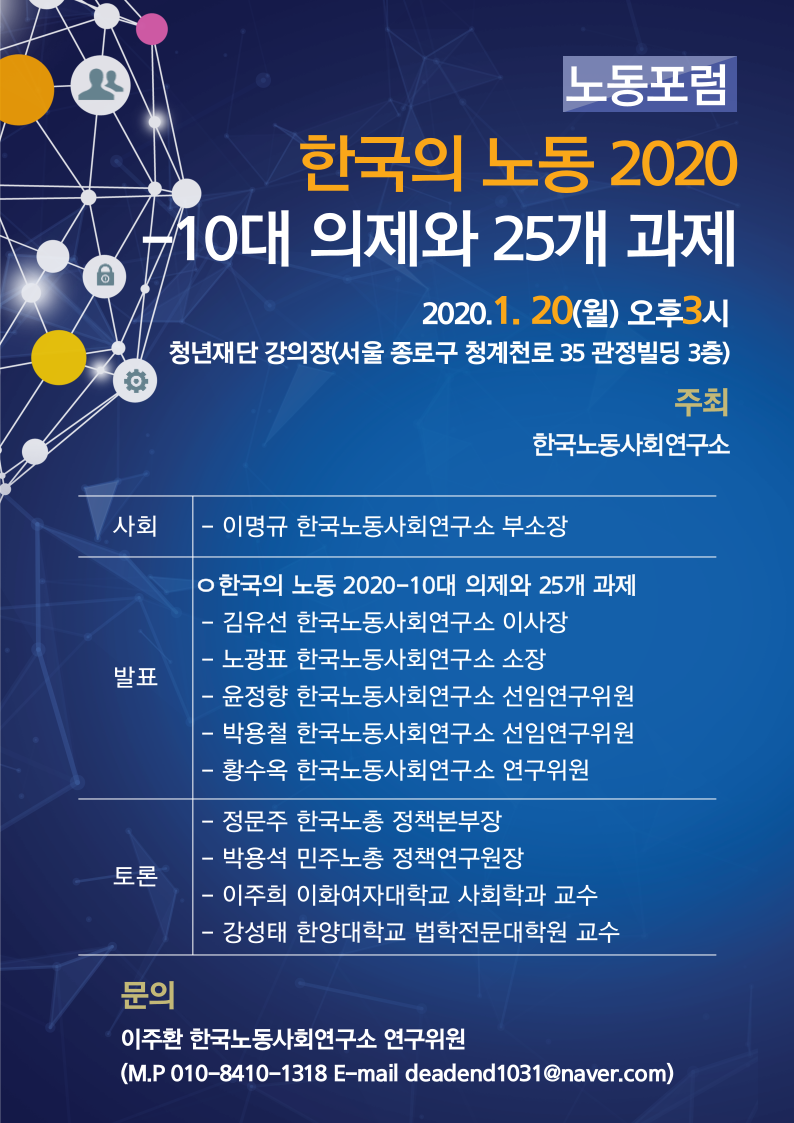[제145차 노동포럼] “한국의 노동 2020 – 10대 의제와 25개 과제” 개최 안내 및 자료집