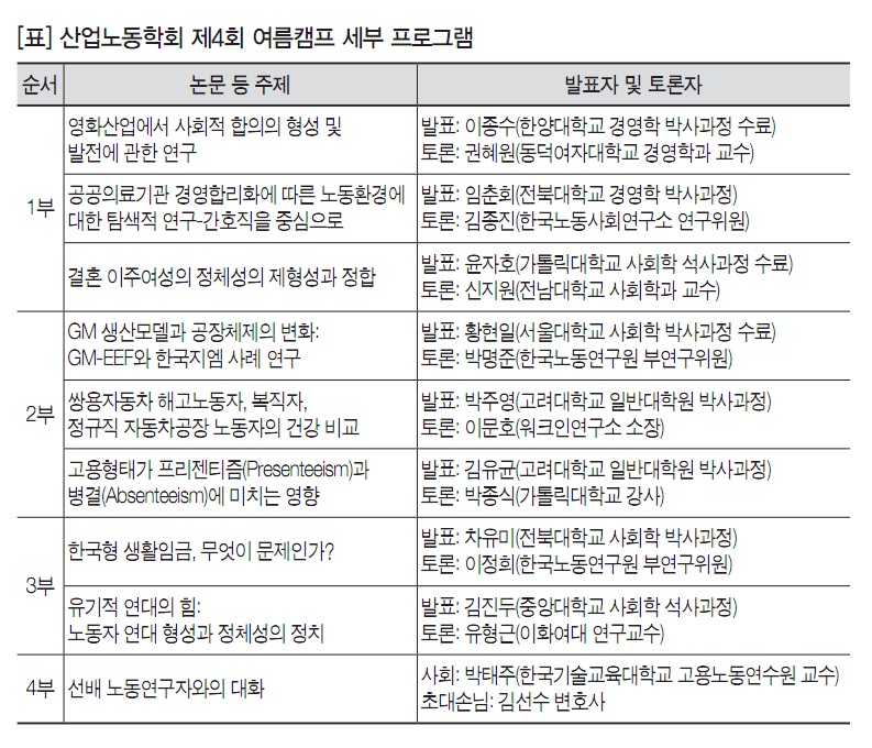 (사진: 7월24일 전주 전통문화연수원에서 열린 한국산업노동학회 제4회 여름캠프 ⓒ한국노동사회연구소)