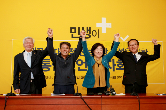 (사진: 2015년 11월3일 국회에서 열린 새로운 대중적 진보정당 건설을 위한 통합선언 기자회견 ⓒ정의당)