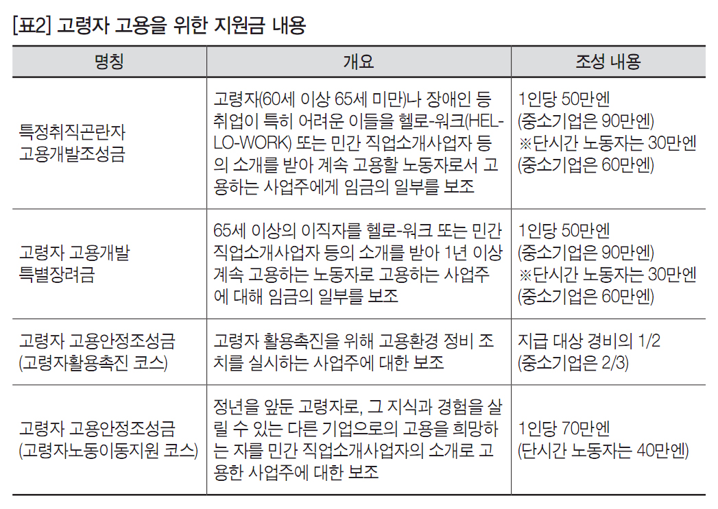 3) 고령자 고용을 위해 조성된 다양한 지원금