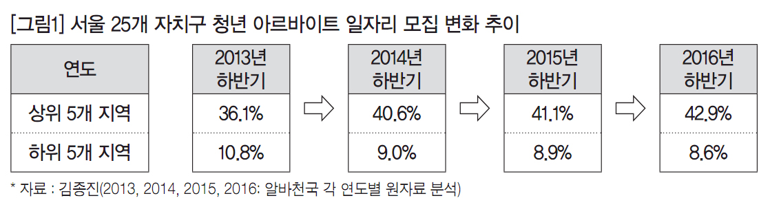 주) 이 글은 한국노동사회연구소 2016년 연구과제(김종진·윤자호·박관성·소준철, 2016, 『서울지역 청년 아르바이트 직업 생태계 실태조사』, 서울시 일자리정책담당관) 보고서를 토대로 필자가 재구성한 것이다.