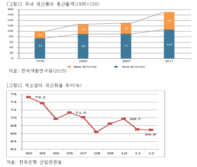 한국의 재벌은 환율조정(국민세금으로 수출대기업을 위한 외국환평형기금 유지), 조세감면과 함께 순환출자, 불공정거래, 규제 해소 등 정부의 온갖 특혜를 받으면서 성장하였다. 그러나 글로벌 다국적기업이 된 삼성은 전체 핸드폰 중 94%를 해외에서 생산하고, 반도체 국산화율은 36%에 불과하며 외국인 지분율은 51%나 된다. 게다가 납품업체 지배력 남용, 골목상권 장악, 간접고용 비정규직 확대로 국민경제에 대한 기여도가 갈수록 떨어지고 있다. 삼성의 이윤이 상승해도 국내 고용증가, 납품업체 상생, 소비자 후생 등이 동반되지 않으므로 국민경제가 성장하지 않는다. 현대자동차의 경우도 비슷하게 고용창출과 이해관계자 동반성장 등 사회적 책임을 다하지 못하고 있다. 따라서 제조업 발전을 위해서는 글로벌 소싱, 원하청 납품구조, 고용구조, 외국인 과다배당 등 재벌중심 산업구조의 전반적 개편이 요구된다.