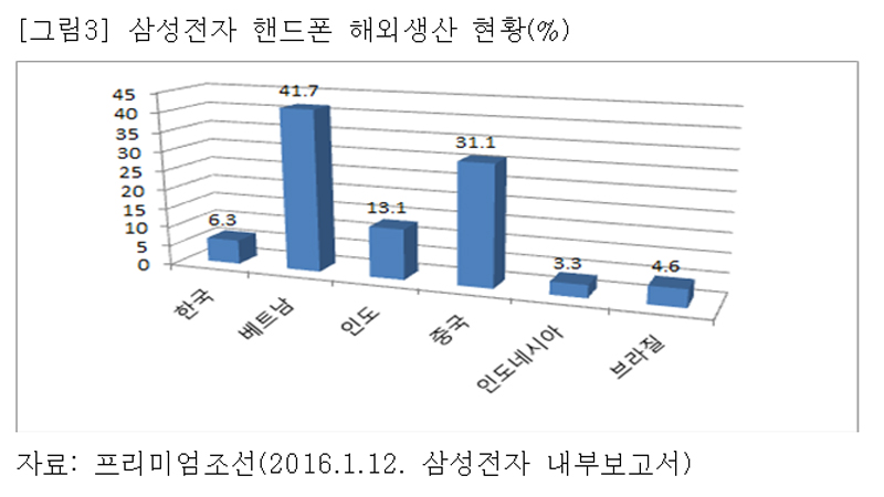 삼성전자와 LG전자는 금융위기 이후 수년간 매출액과 영업이익에서 성장세가 정체되고 있다. 과거 신성장동력이었던 스마트폰은 이제 범용상품이 된 지 오래이다. 삼성의 스마트폰 세계시장 점유율은 22%지만 이익 점유율은 16%로 애플(84%)의 5분의 1에 불과하다. 고가폰 시장은 애플이 차지하고, 저가폰시장도 샤오미 등 중국업체에 밀리면서 설 자리를 잃고 있다.