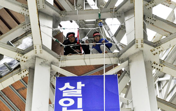 홍종인 전 아산지회장은 2012년 10월21일부터 2013년 3월20일까지 151일간 아산공장 앞 굴다리에 매달려 고공농성을 벌였다. 홍 전 지회장은 이듬해 10월에도 “창조컨설팅을 통한 노조 파괴 시나리오를 실행하고 용역 폭력을 동원한 사업주를 처벌하라”며 이정훈 전 영동지회장과 함께 충북 옥천의 22m 높이의 철탑에 올라 129일을 보냈다. 혼자 남게 된 이 전 지회장은 고공농성을 시작한 지 259일 만인 2014년 6월28일 건강 악화로 땅을 밟았다.
