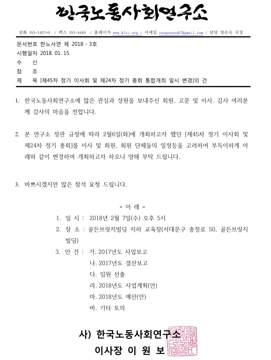 [제45차 정기 이사회 및 제24차 정기 총회 통합개최 일시 변경]